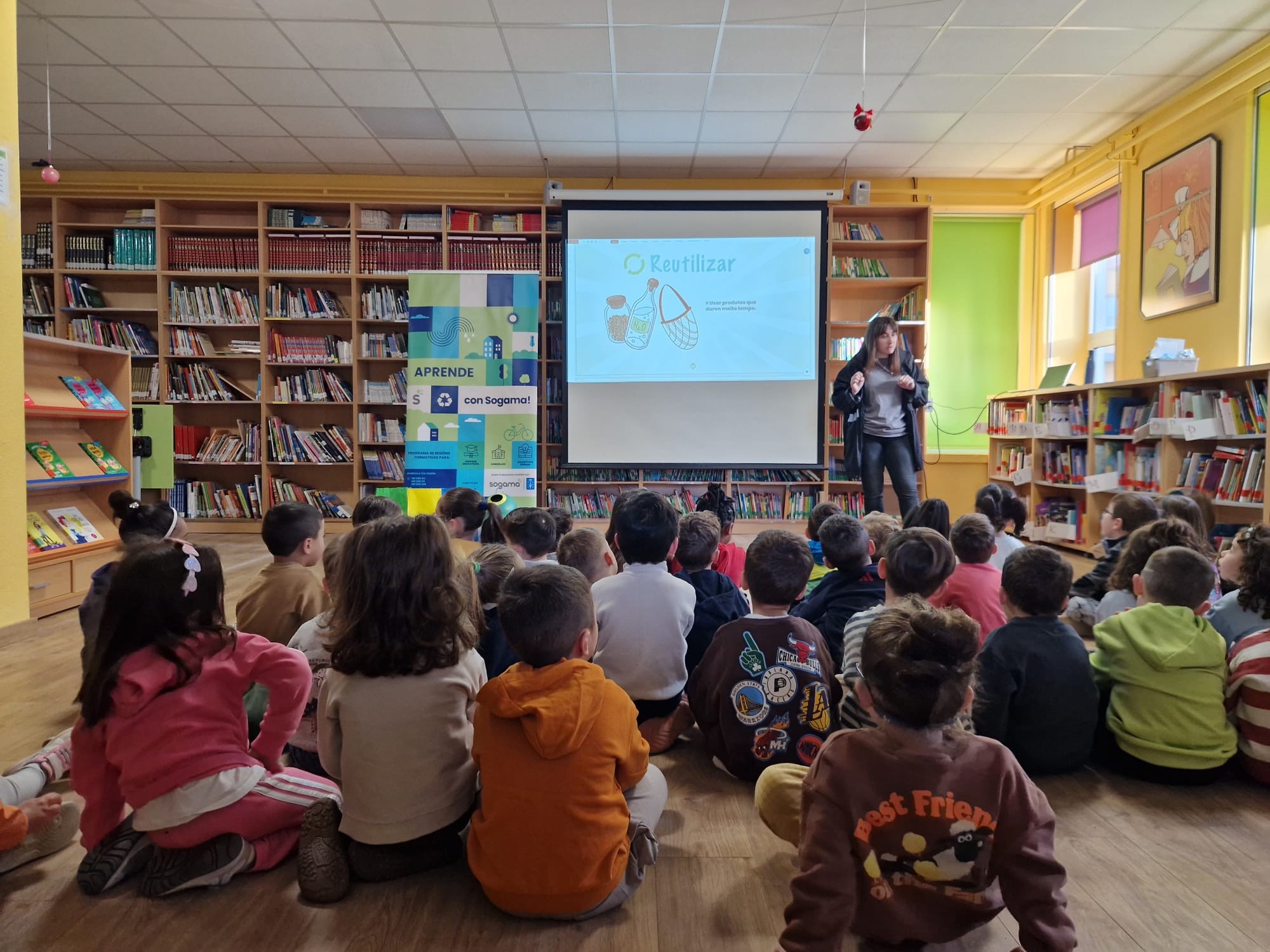 Cerceda, 16 de marzo de 2026.- En días pasados, educadores de Sogama se desplazaron al CEIP Alfonso Rodríguez Castelao de Ordes (A Coruña), a petición del centro, para instruir en reciclaje a cerca de 150 escolares (de infantil y primaria), así como a 10 docentes que, además de acompañar a los pequeños durante las sesiones formativas, tomaron buena nota de las explicaciones para darles continuidad en las aulas y propiciar de esta forma que la gestión sostenible de los residuos sea una constante en el colegio y que incluso se traslade al ámbito familiar.