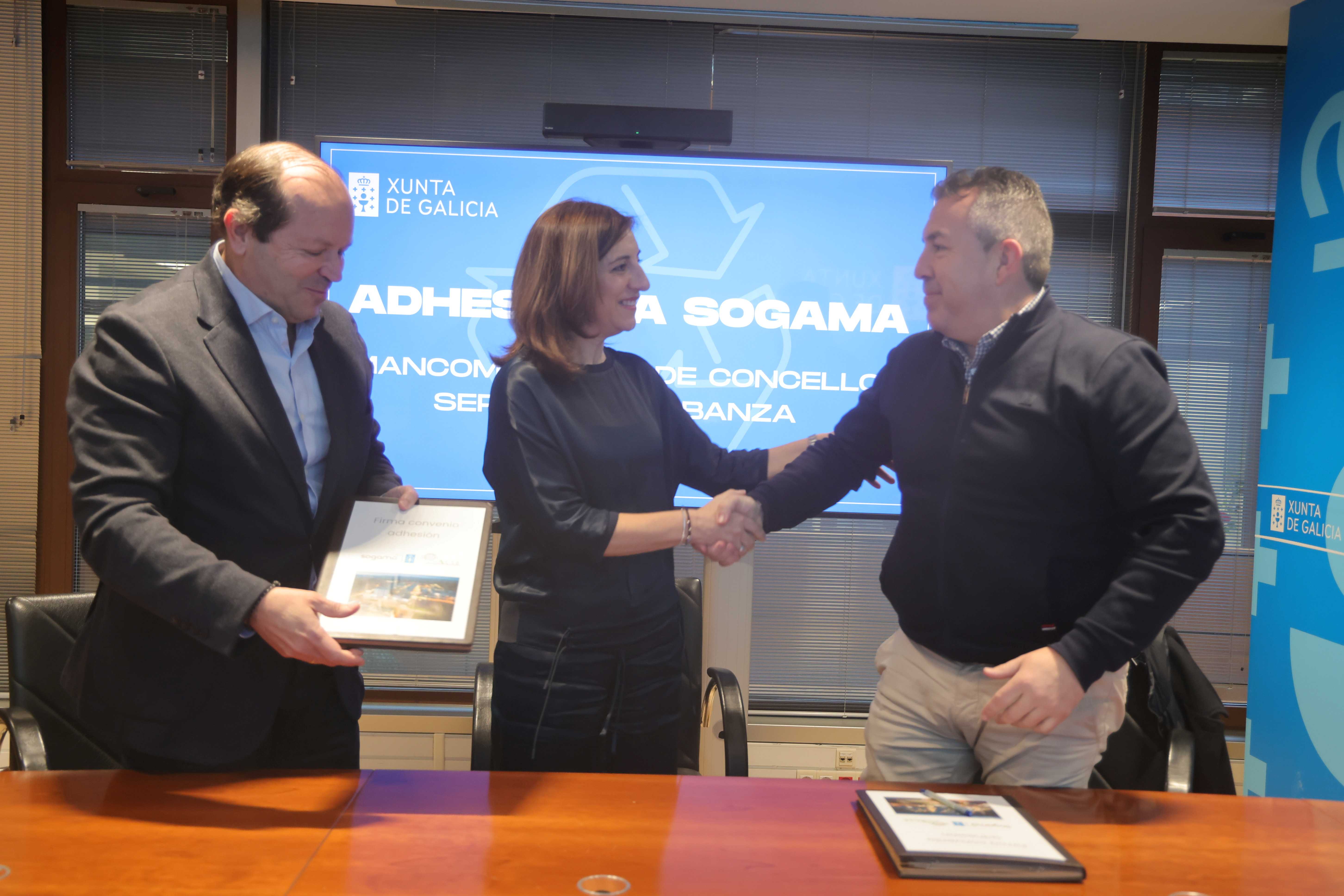 - Su presidente, Pablo Lago Sanmartín, y el presidente de Sogama, Javier Domínguez Lino, firmaron esta mañana, ante la conselleira de Medio Ambiente y Cambio Climático, Ángeles Vázquez, un convenio de adhesión que regirá para un período de 5 años, sujeto a prórroga
