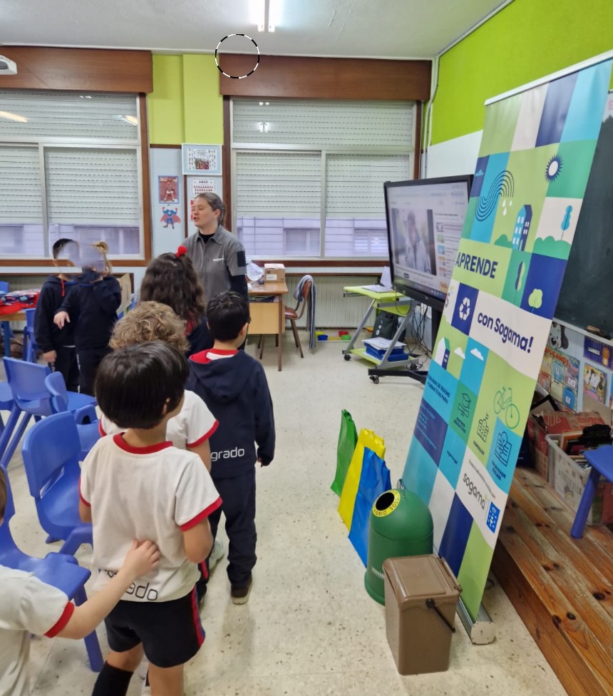 Cerceda, 2 de febreiro de 2026.- Preto de 65 escolares do Colexio Sagrado Corazón de Jesús de Pontevedra, con idades comprendidas entre os 6 e 7 anos, participaron en tres sesións formativas impartidas polos educadores de Sogama neste centro, orientadas a perfeccionar os seus coñecementos en torno á reciclaxe, así como a resolver dúbidas.