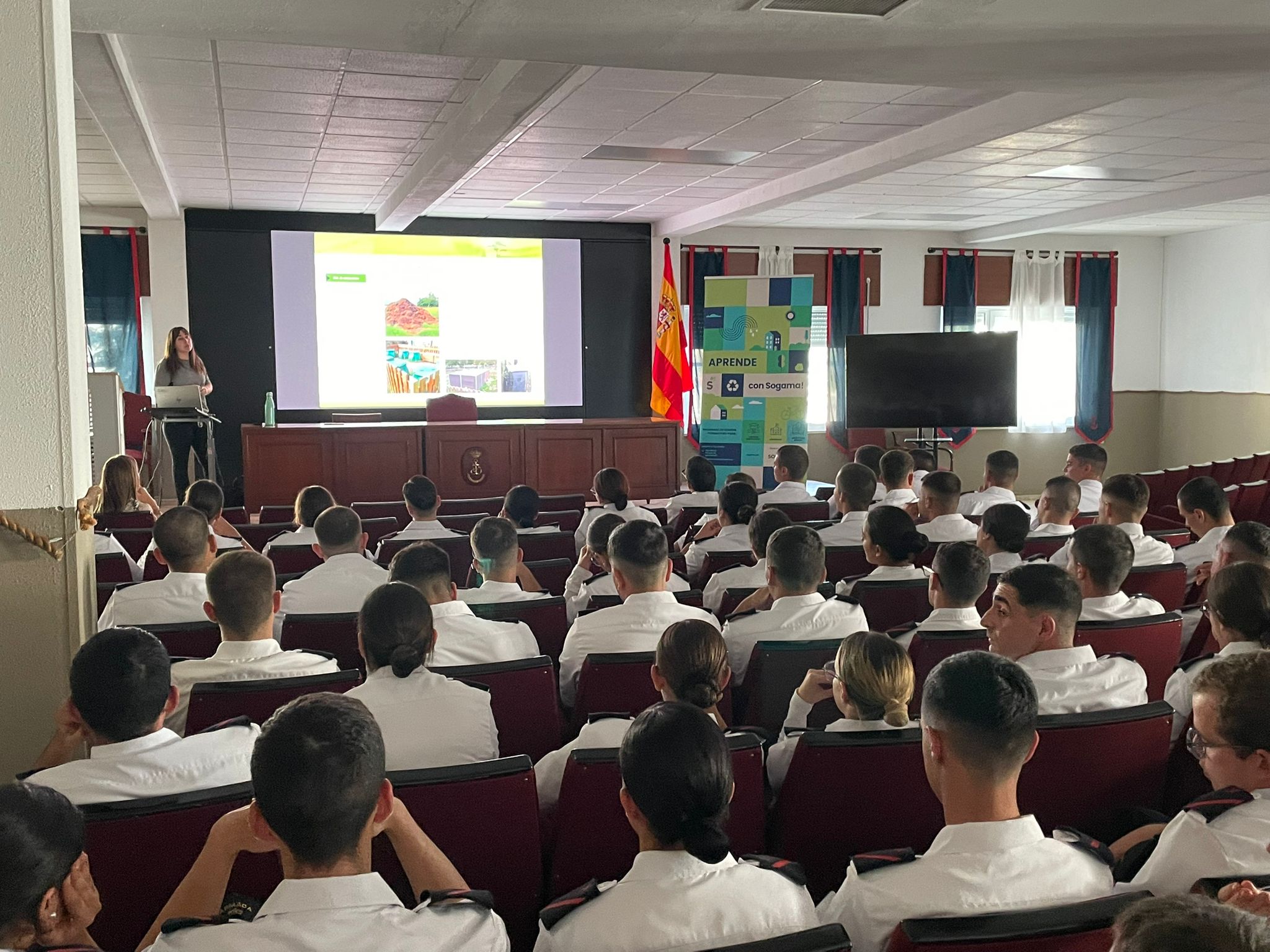 Cerceda, 8 de outubro de 2025.- Máis dun cento de alumnos/as da Escola de Especialidades da Estación Naval da Graña, situada na ría de Ferrol, foron formados por técnicos de Sogama en reciclaxe e compostaxe co fin de mellorar a xestión dos residuos no propio centro, facéndoa máis sostible.